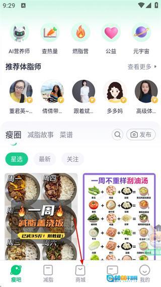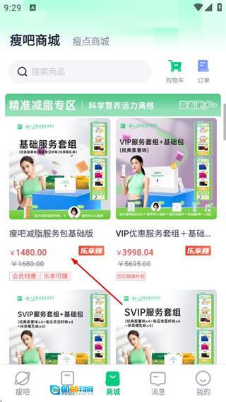 在瘦吧首页,点击底部的商城选项,进入瘦吧商城页面。