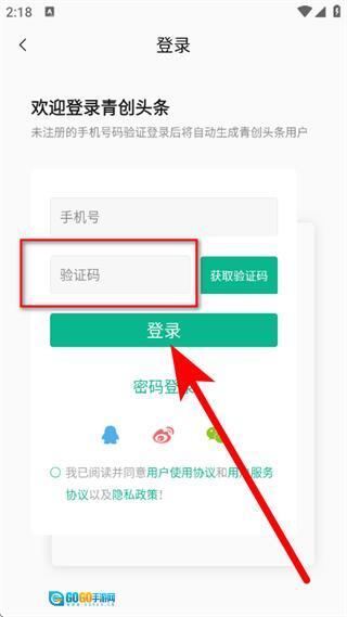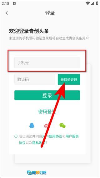在注册登录页面,输入手机号,点击获取验证码。