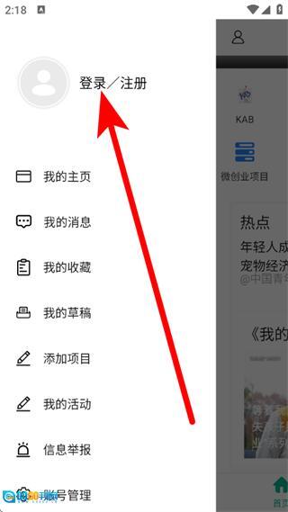 在侧边栏,点击登录注册,进入注册登录界面。