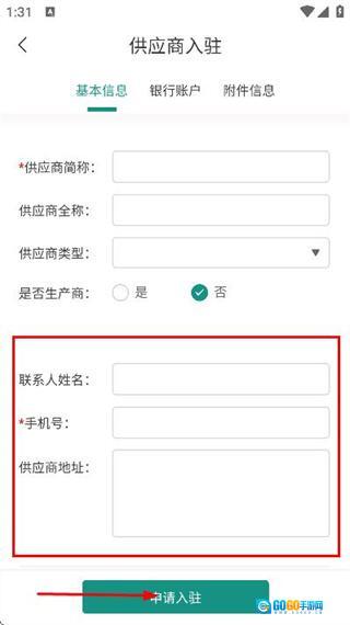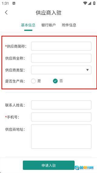 在供应商入驻的基本信息页面,填写供应商简称之类的基础信息。