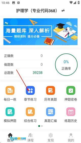 在主管护师智题库的首页,找到并点击“章节练习”选项,即可进入章节练习页面。