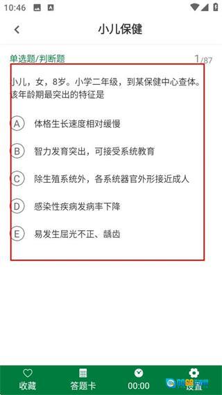 在小儿保健的题目页面,就能开始做这一小节的练习题了。
