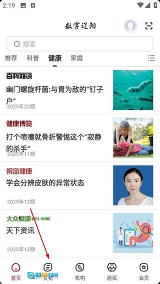 在数字辽阳首页,点击底部的“文化”选项,即可进入文化页面。