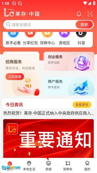 在莱存首页,点击底部的商城选项,即可进入商城页面。