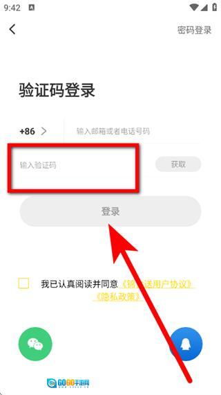 在验证码登录界面,输入邮箱地址或手机号码后,点击“获取验证码”按钮。