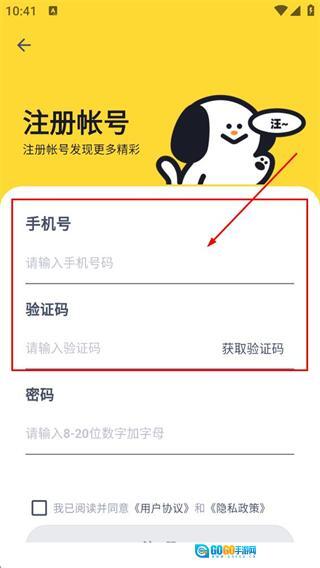在账号注册页面,先输入手机号码,接着点击“获取验证码”按钮,之后把收到的验证码填写进去。