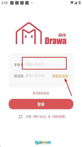 在手机号登录界面输入手机号,接着点击获取验证码。