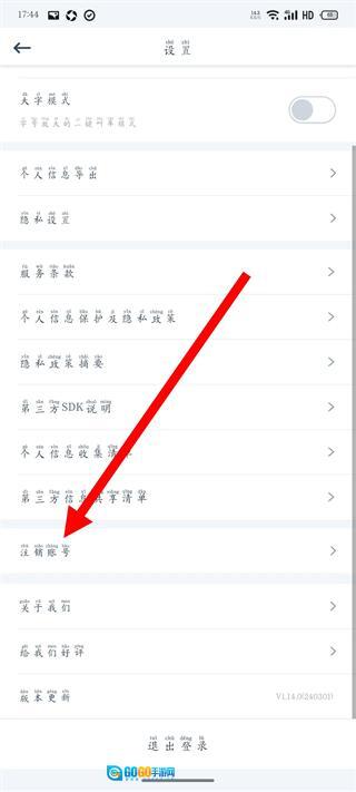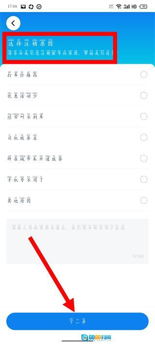 在设置界面中,点击“注销账号”选项,即可跳转至注销原因的选择页面。