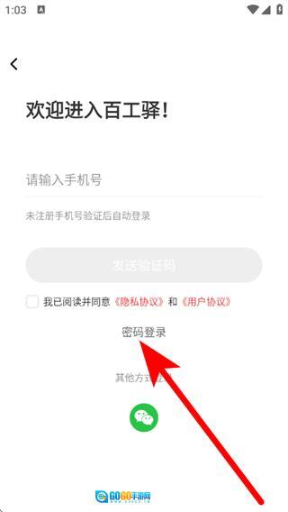 在登录页面,点击密码登录,进入密码登录页面。