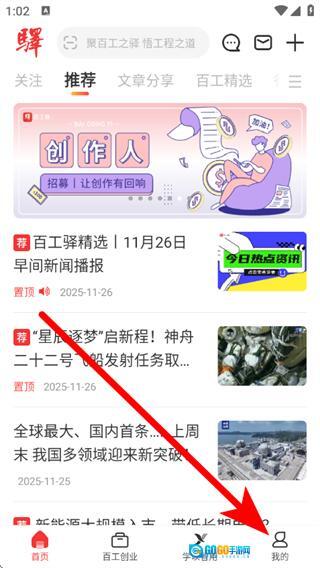 打开百工驿,点击底部我的,进入我的页面。