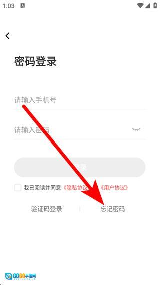 在密码登录页面,点击“忘记密码”选项,即可进入重置密码的页面。