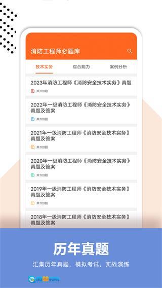 消防工程师必题库是专门面向一级消防工程师考生打造的专业备考平台,全面覆盖一级消防工程师各科目的所有题目,整合了章节练习、模拟试卷、真题汇编等多种题库资源。凭借科学的分类方式与精准的题目解析,帮助考生系统梳理知识点、强化解题能力,能够满足基础复习、强化训练、冲刺模拟等不同备考阶段的需求,通过针对性的练习提升备考效率,扎实筑牢应试基础。