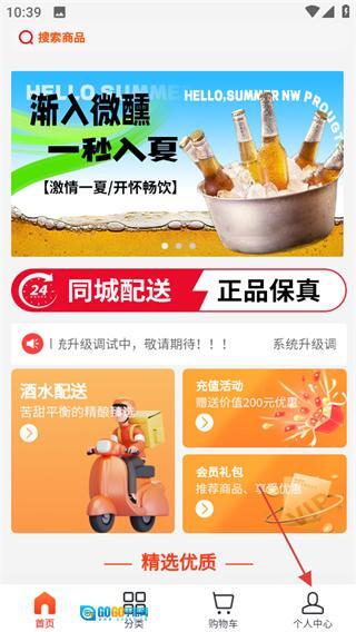 在真购物商城首页,点击页面底部的个人中心选项,即可进入会员中心页面。