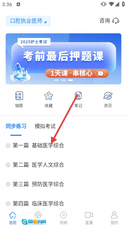 进入专业界面后,展开【基础医学综合】板块,即可开启对应篇章的学习内容。