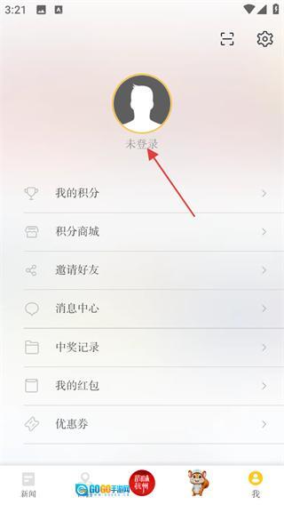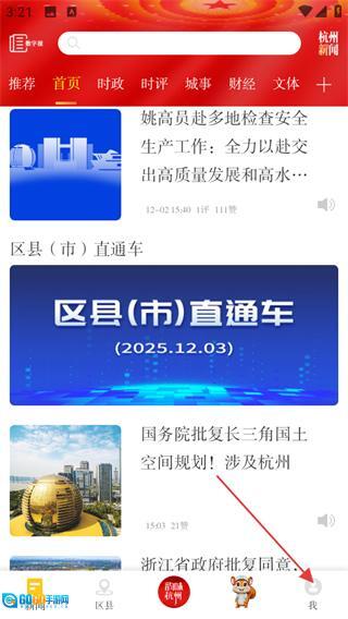 在杭州新闻首页,点击底部的“我”选项,即可进入个人中心页面。
