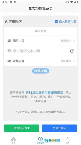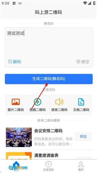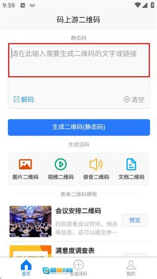 打开码上游二维码的首页,接着在输入框里填入需要转换的内容。