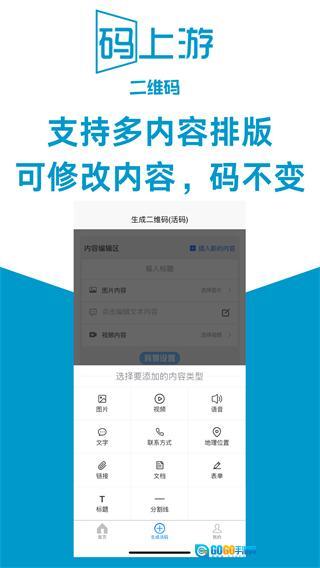 码上游二维码是一款功能全面、操作便捷的应用,为用户提供一站式的二维码生成与管理解决方案。它支持将图片、视频、语音、文档等多种形式的内容快速转化为专属二维码,用户还能对二维码进行自由的美化与编辑。此外,该应用具备集成展示功能和详尽的数据统计功能,帮助用户实时掌握二维码的使用情况。