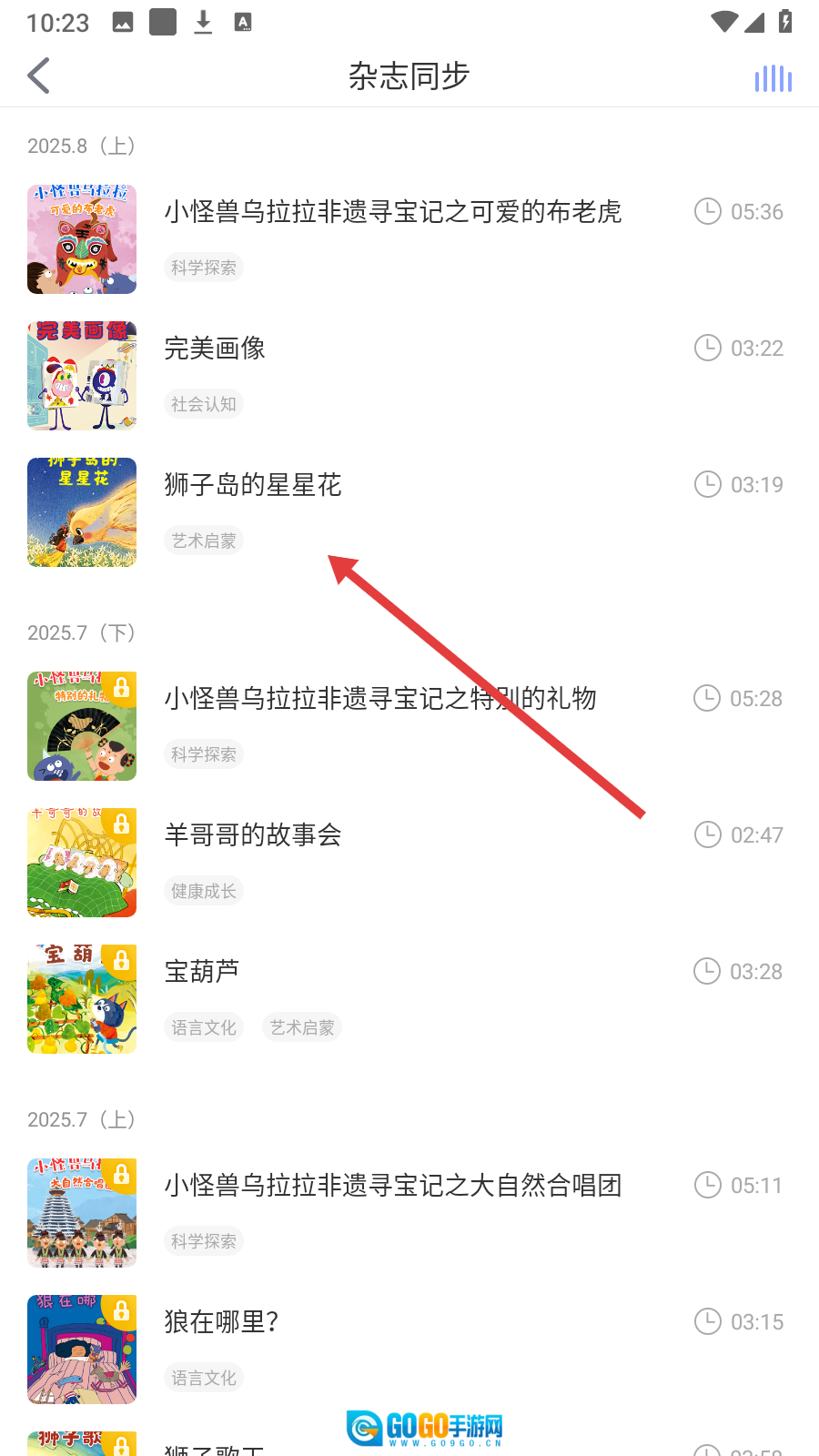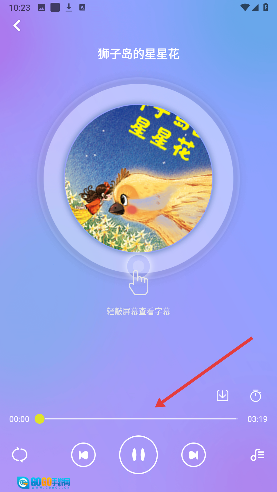 请选择【狮子岛的星星花】,然后进入该音频的详情页面,准备进行播放操作。