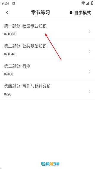 在章节列表页面,挑选想要学习的章节,然后进入该章节对应的答题页面。