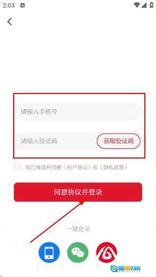 在登录界面输入手机号与验证码,勾选相关协议后,点击登录按钮即可完成账号登录流程。