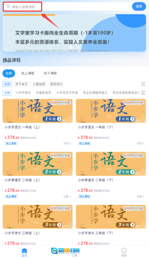 登录应用后,在首页顶部的搜索栏中输入关键词,即可查找相关的课程内容。
