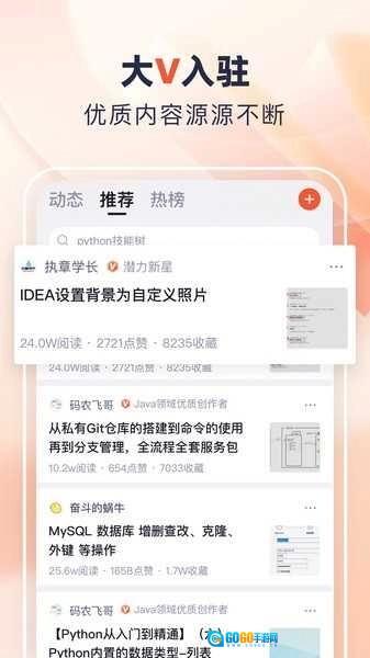 各类技术资讯实时更新,打开应用就能拥有程序员的专属天地。