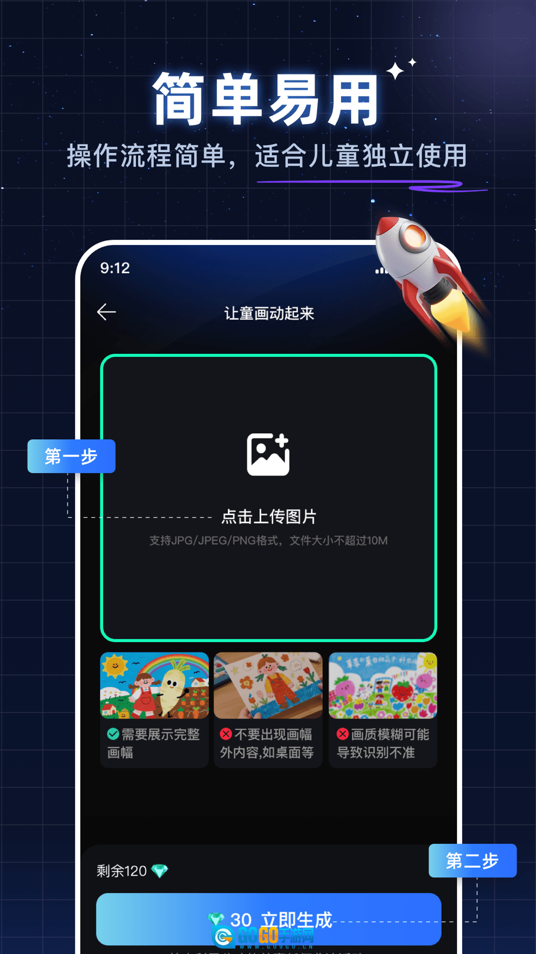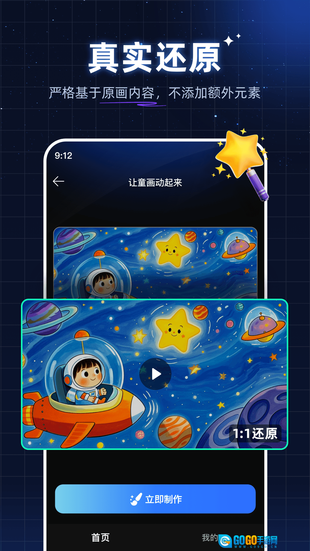 能够精准识别儿童绘画里的人物、动物、物品等各类元素,只需一键操作,就能把静态的画作转变成动态的动画。