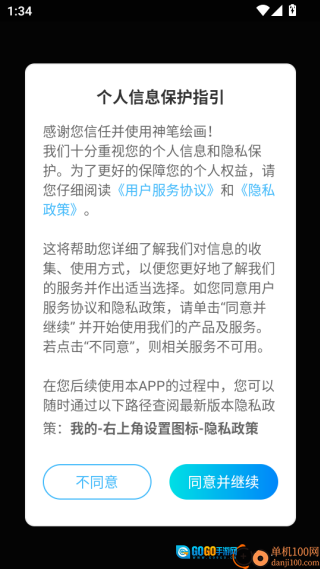 完成软件安装后,新用户需要同意该软件的用户协议与隐私政策。