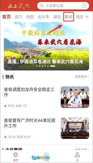 启动云上武穴应用后,在首页显眼位置找到红色的“要闻”栏目入口,点击该入口就能进入本地重要资讯的聚合页面。