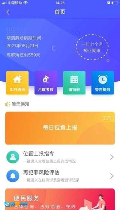 在矫通最新版是一款专为社区矫正人员及管理人员打造的移动应用软件,通过信息化手段提升社区矫正工作的效率与管理质量,矫正对象可通过该软件完成日常签到、实时位置上报、接收并完成学习任务等操作,同时管理人员也能借助软件及时掌握矫正对象的最新动态和相关情况