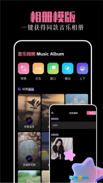 3、音乐相册:拥有海量丰富的模板资源库,用户可自由组合搭配照片与音乐,简单便捷地制作出富有动感的相册作品。