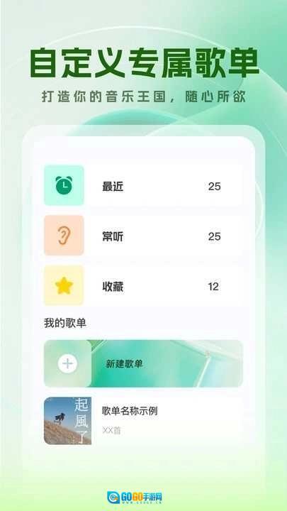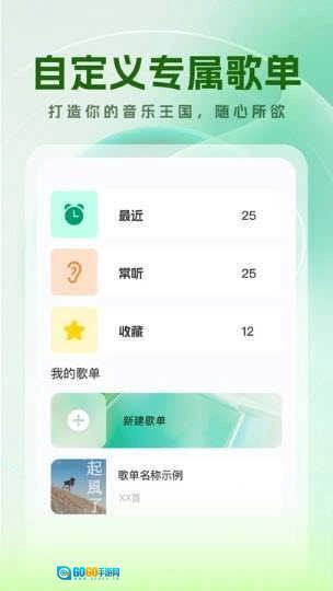 -创建专属歌单:按照个人的音乐偏好,建立多个不同主题的歌单,把自己喜爱的歌曲分类整理并收藏起来,构建出独一无二的个性化音乐天地。