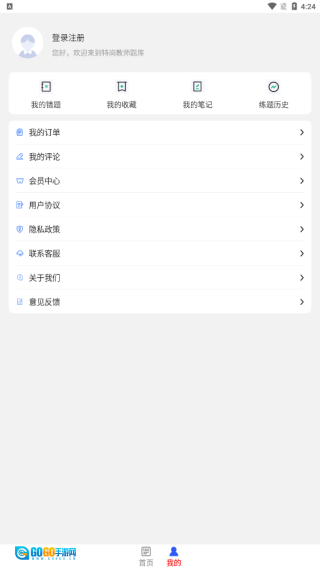 点击“我的”,可以进行登录注册操作,还能查看自己的错题、收藏以及笔记等内容。