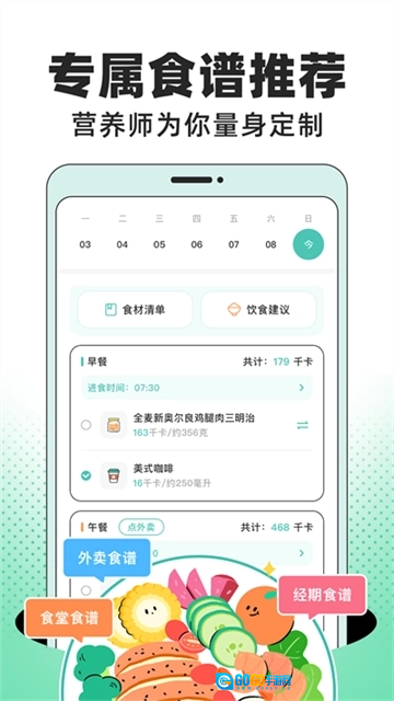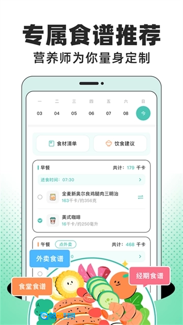 定制食谱中融入减脂外卖与食堂瘦身餐,让你无需亲自下厨也能轻松瘦身。