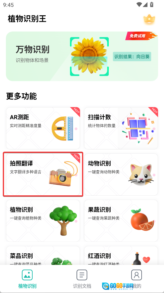 打开植物识别王,点击拍照翻译