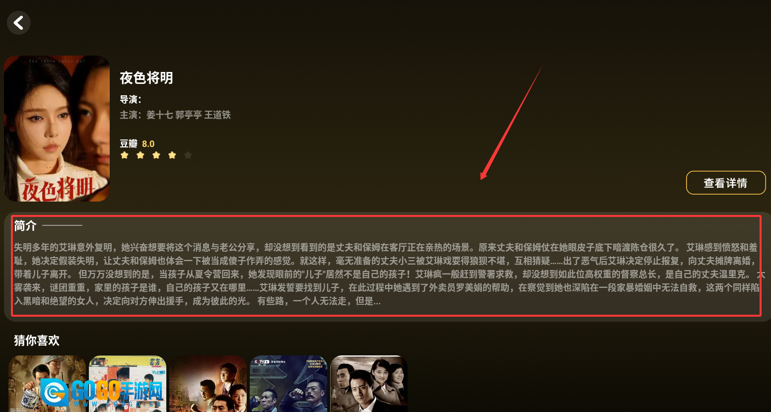 不管是用大屏电视投屏观看,还是直接通过手机观看,都能拥有沉浸式的观影感受,观影前不妨先浏览一下简介。