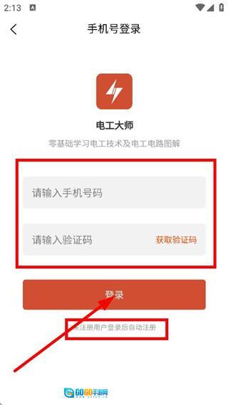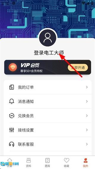 在个人中心页面,点击“登录电工大师”选项,进入登录方式选择页面。