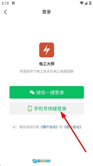 在登录选择界面,点击手机号快捷登录选项,即可进入手机号登录页面。