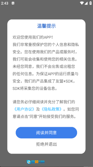 点击‘阅读并同意’,即可进入主页面;