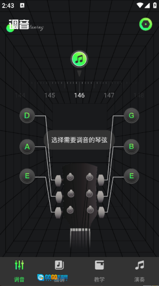 调音器功能可实时捕捉吉他音高,借助清晰直观的界面呈现音准偏差,助力用户迅速调整琴弦音准;