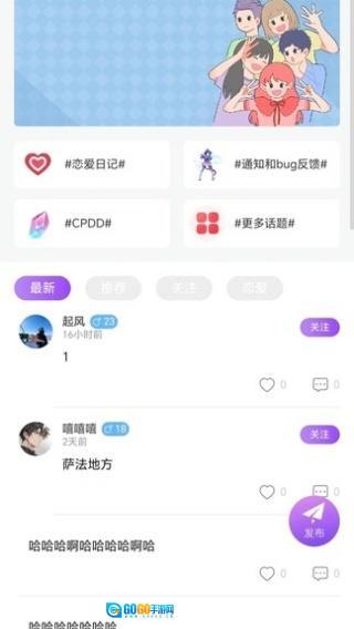 用户能够发布和浏览动态,参与带有不同话题的互动,以此展示自我并找到兴趣相投的人。