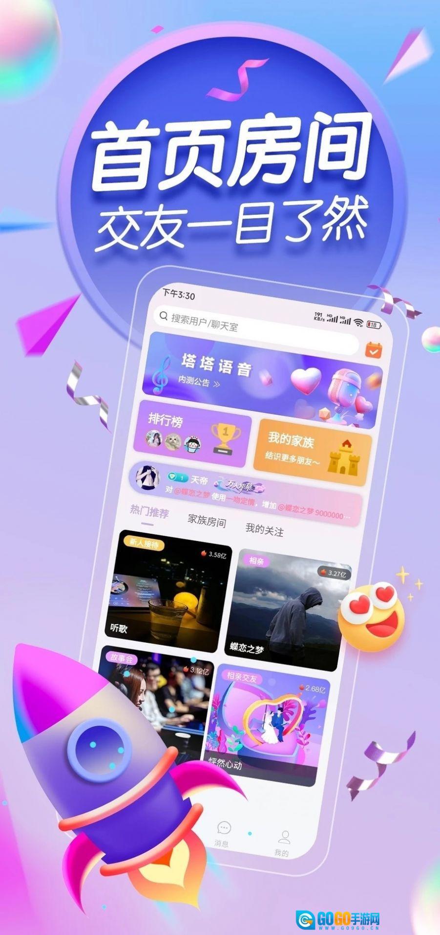 塔塔语音是一款专注于兴趣社交的手机应用,旨在助力用户寻觅志同道合的伙伴,拓展社交圈子,让每一次相逢都始于热爱,以共同爱好为联结,构筑有共鸣的交友空间,是兴趣社交领域的优质之选。平台涵盖多元社交场景,用户可轻松结识新朋友,开启富有意义的交流与互动。