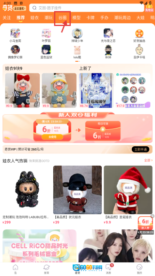 在首页,点击谷圈分类选项,即可进入谷圈商品页面。