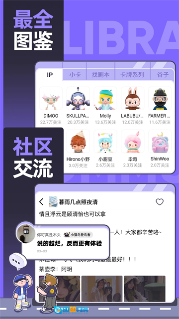 全品类潮玩覆盖:打造超全商品库与图鉴百科,囊括LABUBU、DIMOO、MOLLY等千余个热门IP,还包含盲盒、手办、JK制服等品类,可满足不同潮玩爱好者的选购需求。