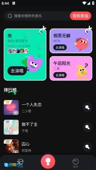 进入平台主页后,能看到丰富多样的歌曲可供选择,只需直接点击想要演唱的歌曲,就能开启K歌模式。