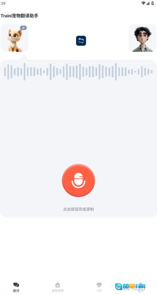 若想把宠物的叫声转换成人类语言,只需点击上方中间位置的转换按钮,即可实现双向互译。