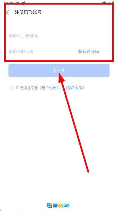 输入手机号码,点击获取验证码,再点击下一步按钮,就能完成账号注册流程了。