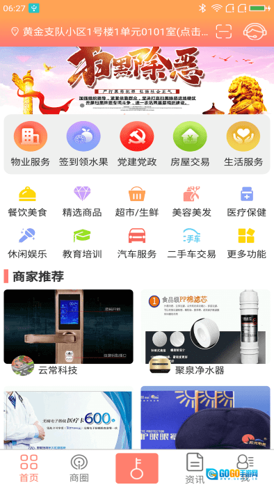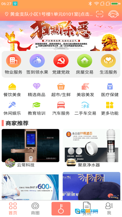在首页可以浏览最新的社区公告以及商家的促销活动信息,您可以根据自身需求挑选合适的服务项目来进行操作和使用。