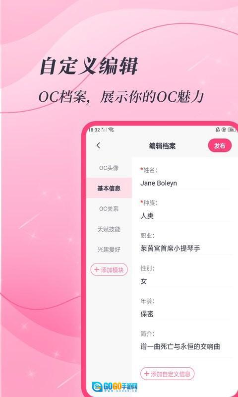 养崽体验鲜活有趣:不仅能和大家交流OC创作的心得感受,还能借助多维度的实用工具,一步步完善OC的设定细节与故事脉络,让养崽的过程充满乐趣与满满的成就感,帮助用户更深度地沉浸到自己的OC宇宙构建中。