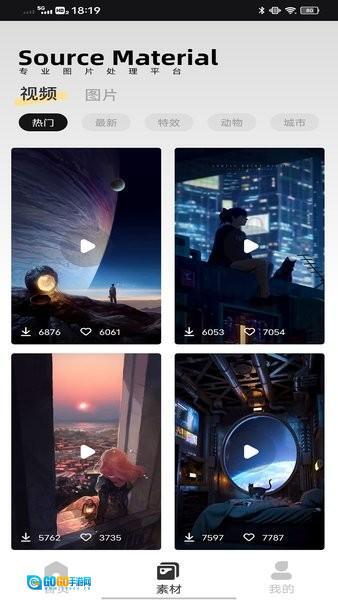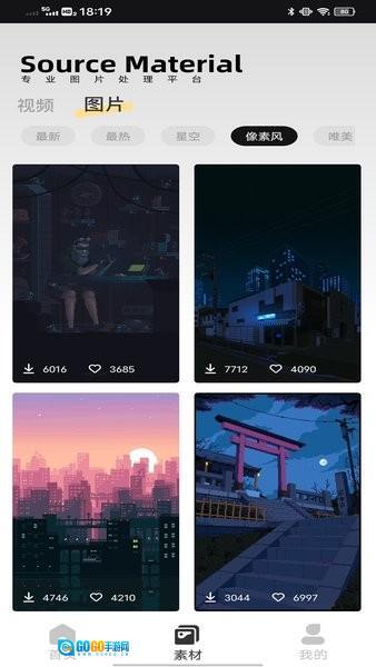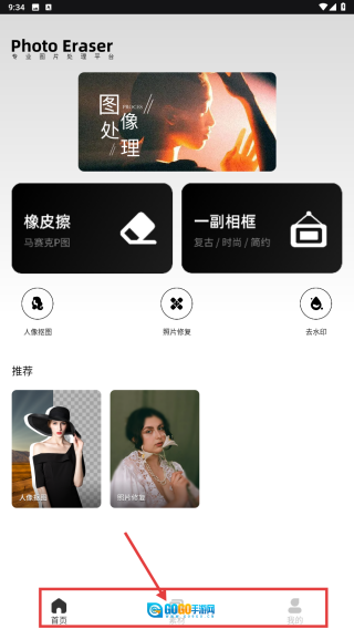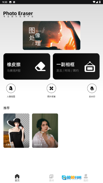 打开Photo-Eraser应用,点击底部的素材选项,即可进入素材选择界面。